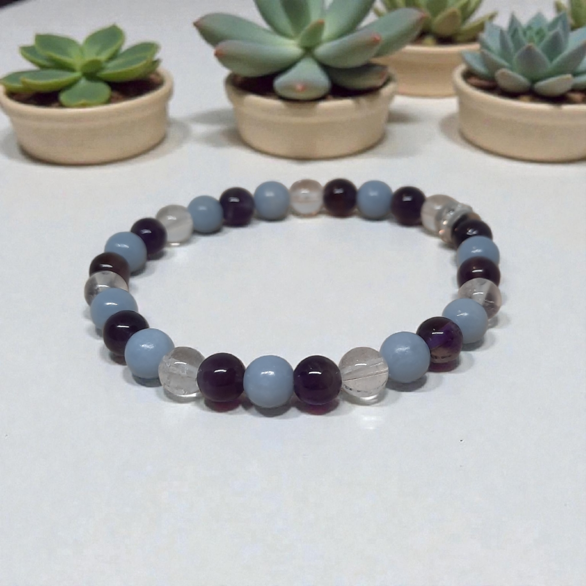 Le stress est une réalité quotidienne pour beaucoup d’entre nous. Par exemple, les pierres comme l’améthyste (calme et sérénité), le quartz rose (douceur et réconfort) et la lépidolite (équilibre émotionnel) forment une combinaison harmonieuse. Ce type de bracelet est parfait pour retrouver la paix intérieure et favoriser un sommeil plus apaisé.