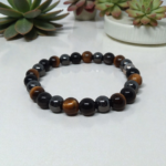 Mes créations sont pensées pour être portées par petits et grands. Pour les hommes, les bracelets sont conçus pour allier puissance et sobriété. L’œil de tigre, qui apporte confiance et protection, l’hématite, qui favorise l’ancrage et la vitalité, ou encore l’obsidienne noire, qui agit comme un véritable bouclier énergétique sont les pierres les plus demandées. La pierre de lave a également beaucoup de succès: pierre d’ancrage elle a le mérite de pouvoir y accueillir des huiles essentielles grâce a sa porosité.