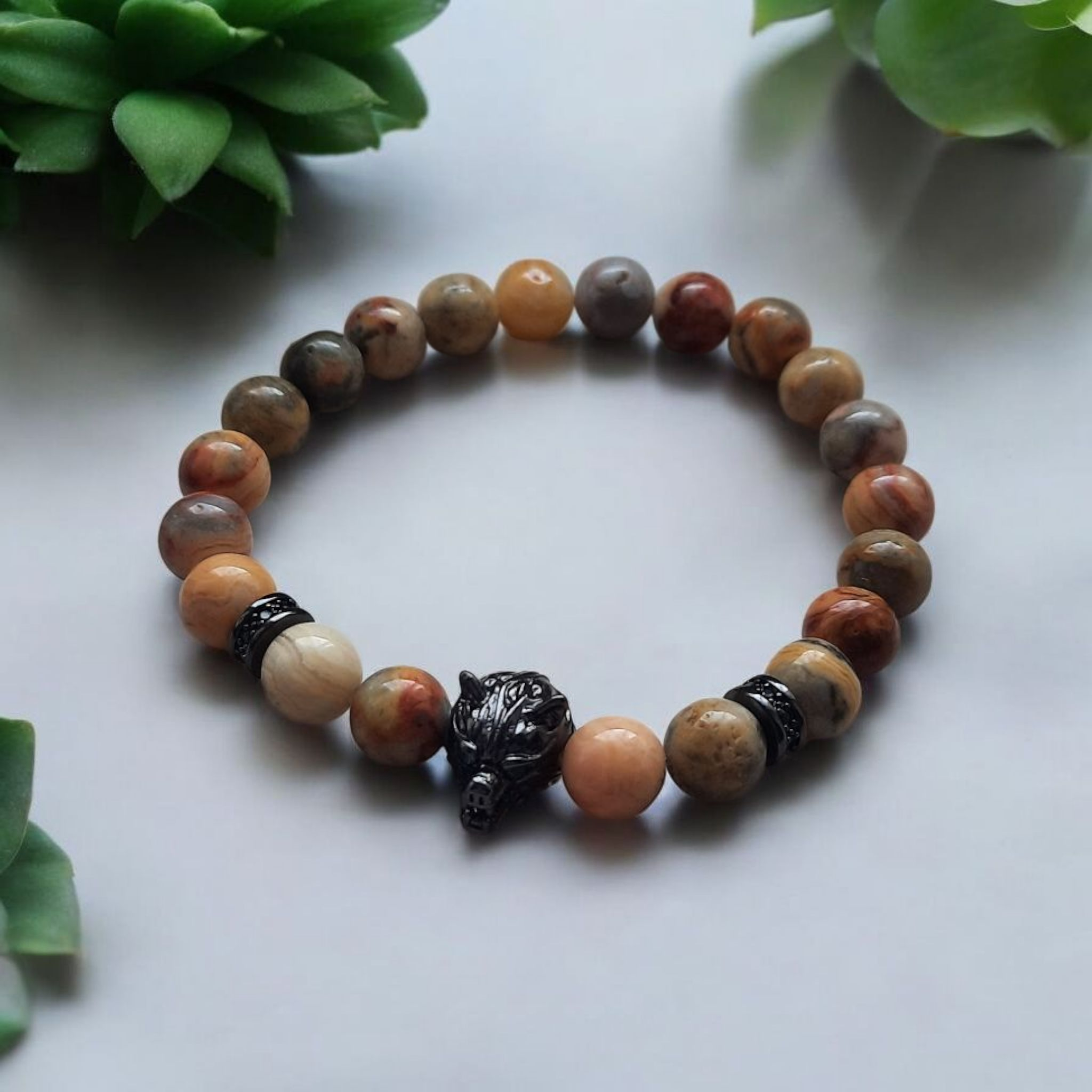 Ces pierres, aux teintes profondes et masculines, s’accordent parfaitement entre elles pour créer des bracelets élégants, discrets mais chargés de force intérieure. Bien sûr, le choix des hommes ne s’arrêtent pas à ces pierres de couleurs sombres. Certains aiment porter de l’améthyste, du quartz rose, de l’aventurine ou toute autre pierre colorée. Ils font alors le choix d’y mettre un fermoir plus masculin, comme une tête de loup, une colonne ou une rune viking.