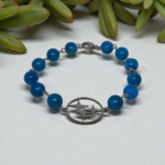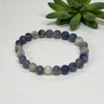 Pour un bracelet aux tons bleus, j’aime associer la sodalite, l’apatite bleue et l’aigue-marine, le lapis lazuli qui favorisent la communication et la clarté mentale.